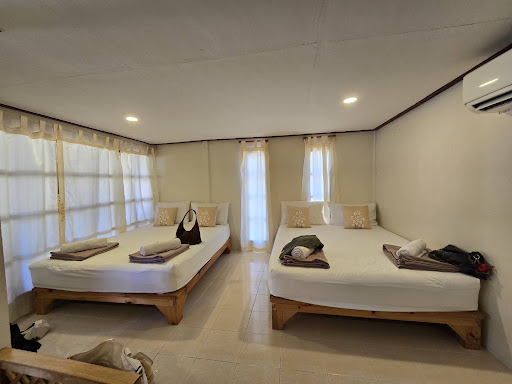 บ้านพัก แนว cozy น่ารัก สไตล์มูจิ ห้องแบบ 4 คนอย่างกว้างขวาง มีอ่างอาบน้ำ ห้องใหม่ สะอาด น้ำแรง (เรานอนชื่อบ้านร่มไม้) ที่พักมีหมูกะทะขายเป็นเซต (ให้เยอะ) มีจักรยานให้ปั่นฟรี เจ้าของที่พักและป้า(พนักงาน) อัธยาศัยดีมาก ใจดี น่ารัก เป็นกันเอง อาหารเช้าดีมากก ถ้ามาที่นครนายกแนะนำที่พักที่นี่ค่ะ